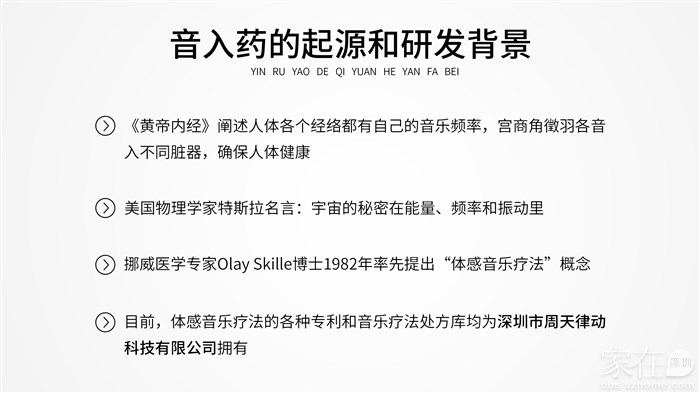 工作原理:現代醫學研究表明人體經絡與五音有和諧共振的現象,人體經絡的固有振動頻率的諧振頻率和音樂的音符呈和諧比關系,和諧的振動會使經絡保持通暢,“通則不痛 痛則不通”就是這個原理。