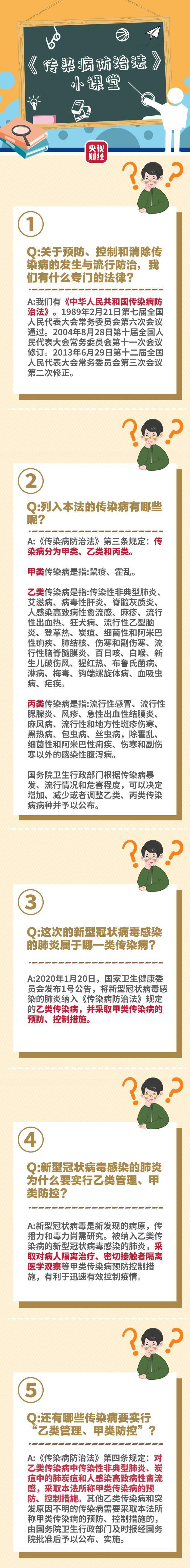 1月20日,國家衛生健康委員會發布1號公告,決定將新型冠狀病毒感染的肺炎納入法定傳染病乙類管理,并采取甲類傳染病的預防、控制措施。疫情之下,如何做好傳染病防治?在我國傳染病分幾類?甲類、乙類傳染病分別有哪些?甲類防控措施又意味著什么?央視財經今天推出《傳染病防治法》小課堂第一期,戳一圖↓↓轉發周知!